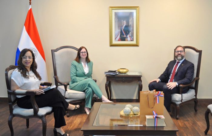 El Ministro de Justicia, Rodrigo Nicora, recibió en la sede ministerial a la Embajadora del Reino Unido en Paraguay, S.E. Danielle Dunne, en el marco de una visita protocolar orientada a fortalecer los lazos de cooperación bilateral en materia de justicia, derechos humanos y reinserción social.