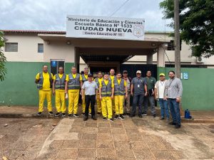 En esta nueva etapa, los trabajos llegaron a la Escuela Básica N.º 3406, la Escuela Básica Eugenio A. Garay, la Escuela Paraguay, la Escuela Nuestra Señora de las Mercedes y la Escuela N.º 1533 Ciudad Nueva, donde se realizaron tareas de limpieza, mantenimiento y acondicionamiento de los espacios escolares.